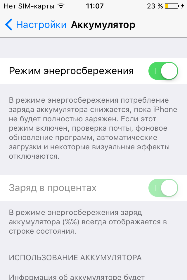 Режим энергосбережения. Судя по всему, прошли времена, когда Apple была уверена в лучшей автономности по сравнению с конкурентами. Пункт из раздела о батарее Android, перекочевал в iOS9. В этом режиме, понизится производительность процессора, приложения не будут работать в фоне, отключаться анимации.