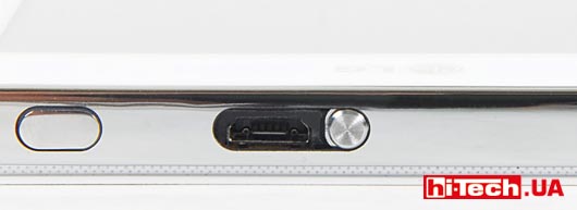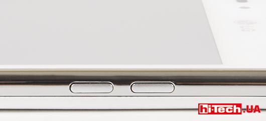 Дальше — больше. Моноблочный корпус смартфона выполнен из прочного пластика. Задняя его часть — шероховатая (хорошо лежит в руке), а по периметру устройства — металлическая окантовка. К слову, хорошее сцепление с рукой — важная характеристика для большого смартфона. В противном случае дорогое устройство так и норовит выскользнуть из рук, подобно куску мыла (на подобный недостаток мы неоднократно обращали внимание в тестах Galaxy SIII и Note II, см. hi—Tech PRO № 1/2013, с. 65 электронной версии).