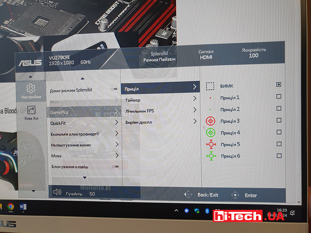 В меню можно выбрать уровни фильтра синего света, произвести настройку яркости, контрастности и прочего, а также активировать режимы для разного типа контента. Есть и сугубо геймерские фичи – счетчик кадров или постоянно расположенные прицелы по центру экрана.