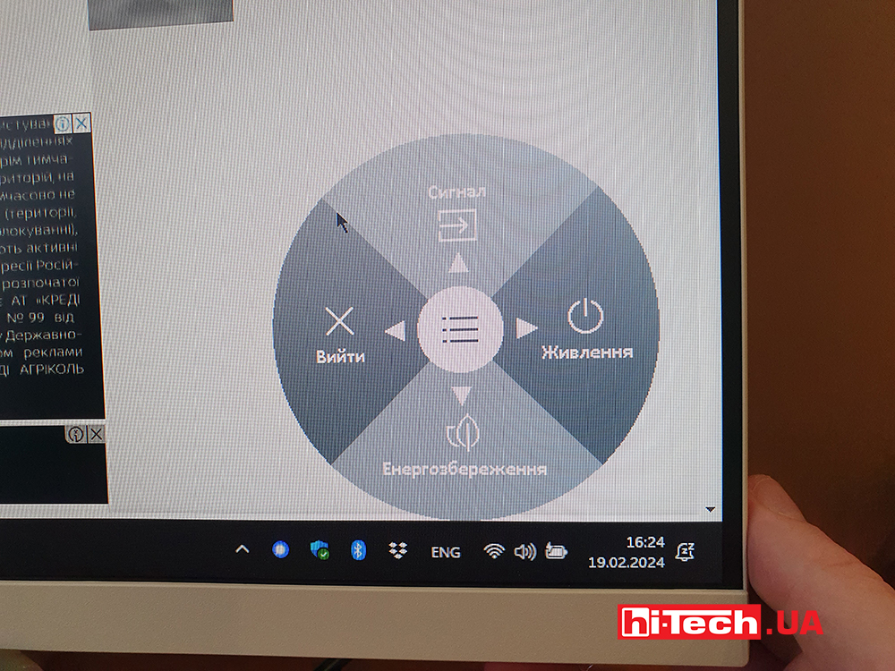 Там же рядом расположены всего три разъёма этого монитора, а в углу задней части – кнопка-джойстик вызова и управления интерфейсом меню настроек.