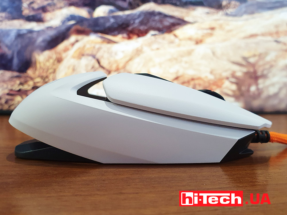 Подсветки здесь нет вообще. Логотип на задней части нанесен краской, он не ощущается на ощупь. В черной версии сочетается черная матовая и глянцевая краска, а в белой версии – серебристый логотип. Хотя мы не фанаты новогодних елок на столах геймеров, добавить диодик, который бы лаконично подсвечивал мышь изнутри, создавая атмосферу загадочности, стоило.