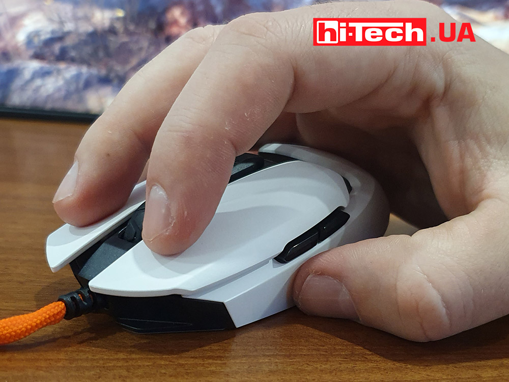 Общие очертания корпуса симметричны и если бы не расположены на левой стороне дополнительные клавиши – мышь вполне была бы приспособлена для левшей. Если кнопки сбоку удобно нажимать мизинцем или подмизинным пальцем, то это действительно так.