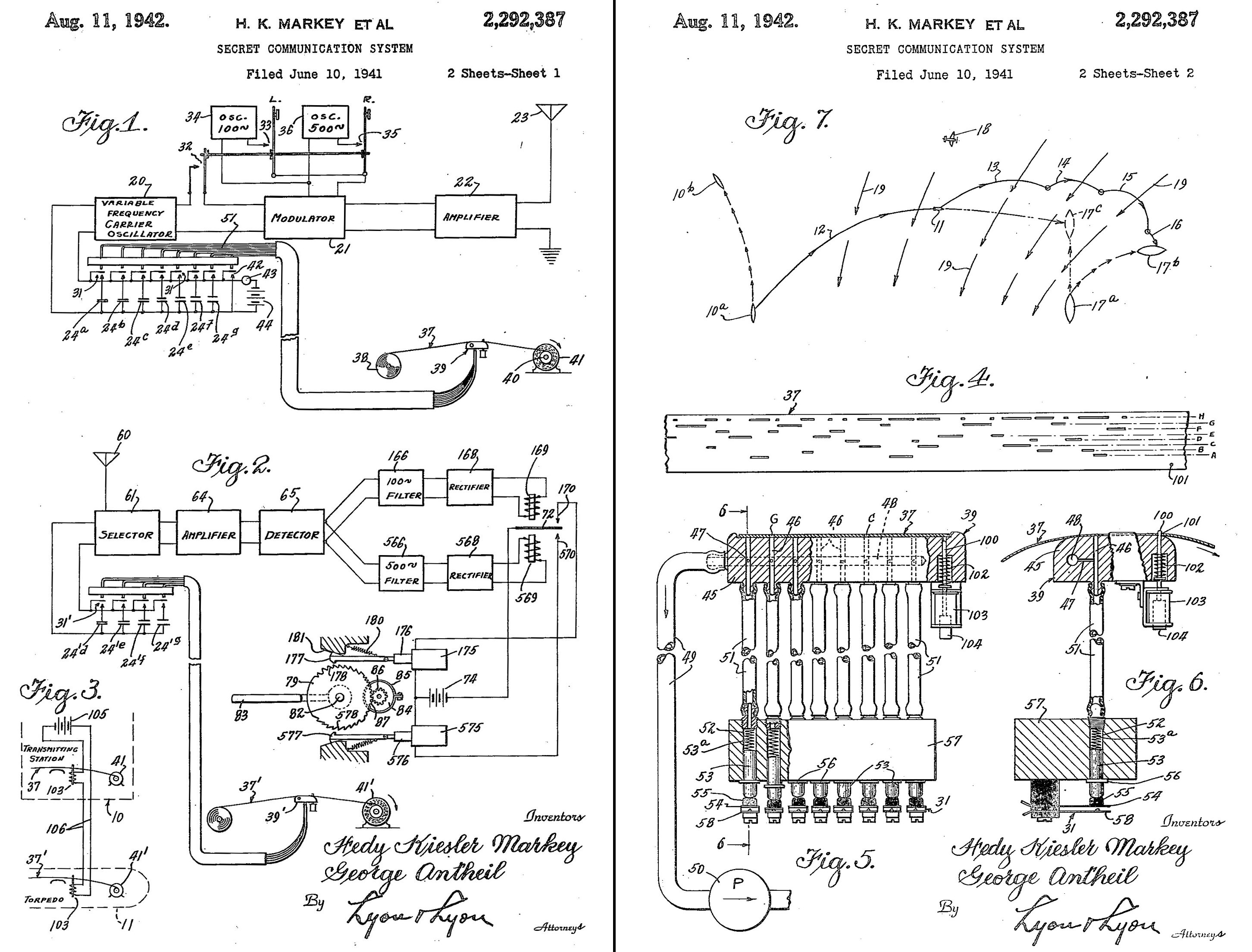 Идея получила название «псевдослучайной перестройки рабочей частоты» (Frequency Hopping Spread Spectrum). Проверка на механических пианино, участвовавших в постановке «Механического балета», подтвердила работоспособность системы. Еще несколько месяцев Хеди и Джордж дорабатывали свое изобретение. В декабре 1940 года заявка была направлена председателю Национального совета изобретателей Чарльзу Кеттерингу (глава исследовательского отдела General Motors), отобрана среди сотен тысяч других и доработана под его руководством. В июне 1941 года был получен патент США № 2,292,387 на «Систему секретных сообщений» (Secret Communication System). Патент описывал секретные системы связи, включающие передачу ложных каналов на разных частотах. Ламарр и Антейл подарили его правительству и отказались от всех выплат.
