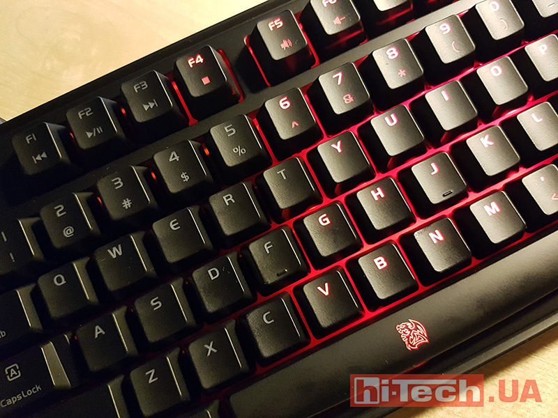 Tt eSPORTS Meka Pro Cherry Blue оставляет впечатление очень добротной и надежной. В принципе, так мы можем сказать обо всех игровых клавиатурах от Thermaltake. Клавиши срабатывают очень четко. Никаких ложных реакций нет. «Клава» очень устойчива и не скользит на столе. При этом Meka Pro достаточно высокая, поэтому удостоверьтесь, что она будет удобной для вашего рабочего места.