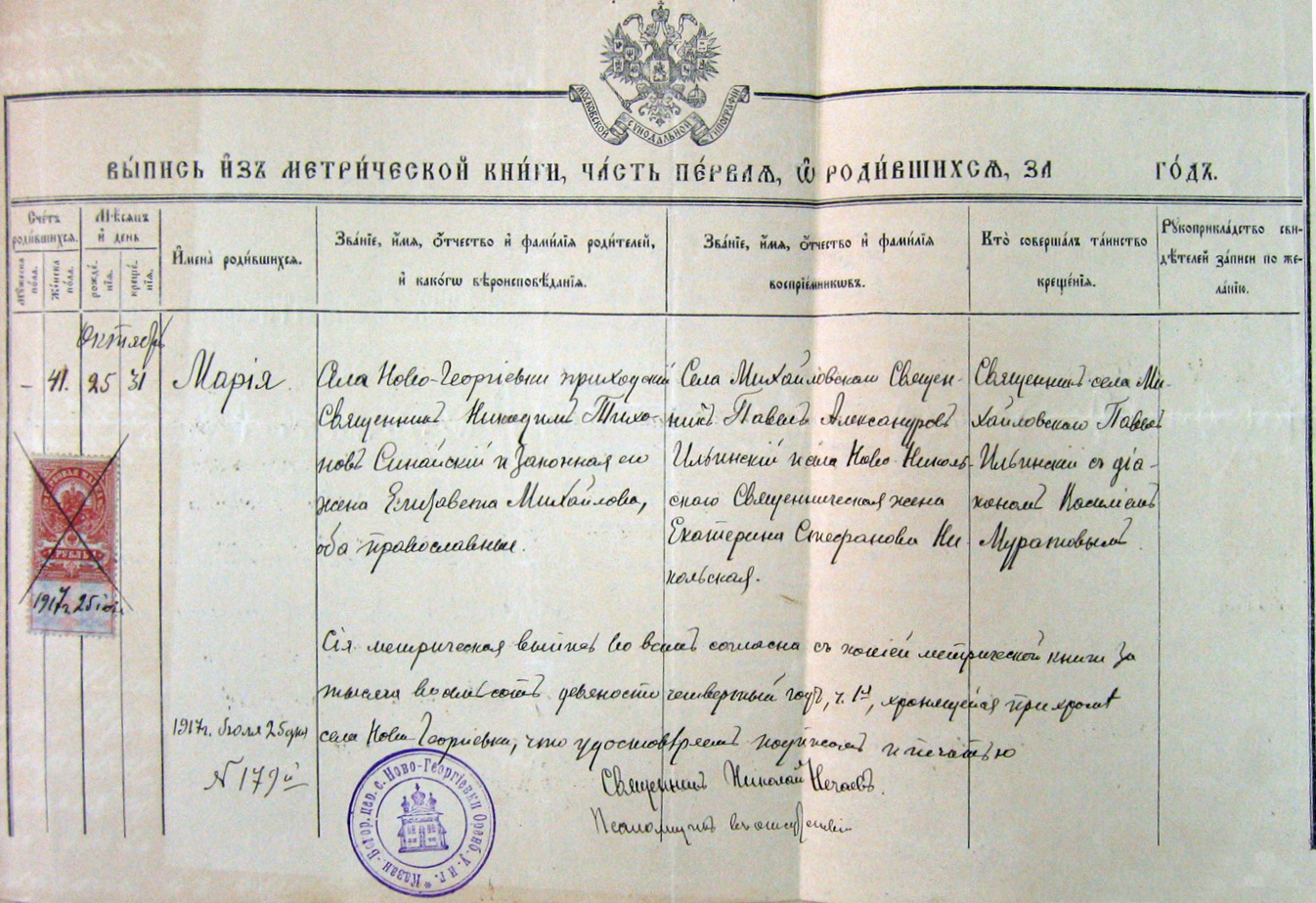 Также не стоит забывать про сайт государственного архива Украины. Полезной будет и страница «Государственные архивы России». Кстати говоря, на последнем ресурсе в открытом доступе можно найти небольшой банк генеалогических данных конца XIX — начала ХХ века по царской России (метрики, справочники, переписи и прочее). Часть документов требует платного доступа, но многое можно просмотреть, просто зарегистрировавшись на портале.
