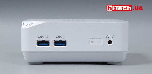 Мини-ПК MSI Cubi. Левый USB-порт на передней панели можно использовать для зарядки мобильных устройств, даже когда компьютер выключен