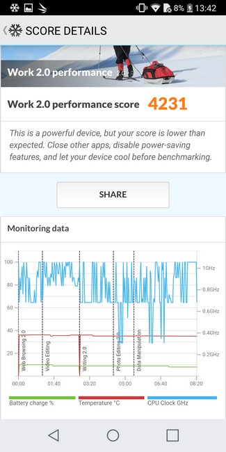 LG G6 использует платформу Qualcomm с установленным процессором Snapdragon 821, а также графикой Adreno 530. Кроме этого, в нашей версии смартфона было установлено 4 ГБ оперативной и 32 ГБ встроенной памяти. 821й, особенно к концу 2017 года, далеко не топовый процессор, однако для работы смартфона его хватает с головой.