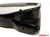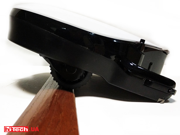 Корпус выполнен из пластика, который имеет глянцевое покрытие. Поэтому он маркий и на нем видна пыль. Тем не менее, бампер, как и вся конструкция, довольно крепкий. Слегка подвижная его часть имеет ряд датчиков, при срабатывании которых пылесос «узнает», что он нашел препятствие. Тогда пылесос уткнется в него и начнет изучать пути объезда.