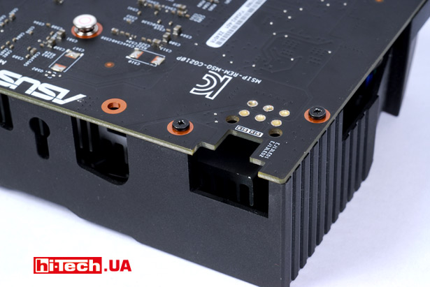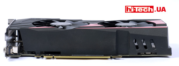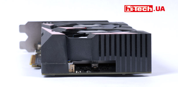 Малое энергопотребление видеокарты, получившееся за счет энергоэффективной архитектуры (напомним, что в новом поколении графических процессоров NVIDIA используется 16-нанометровый FinFET-техпроцесс) и сравнительно простого GPU, позволило в данном случае полностью обойтись без дополнительного питания.