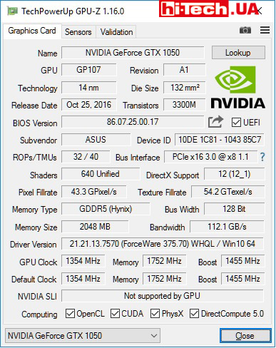 Обзор видеокарты Asus EX-GTX1050-2G. Самый младший Pascal