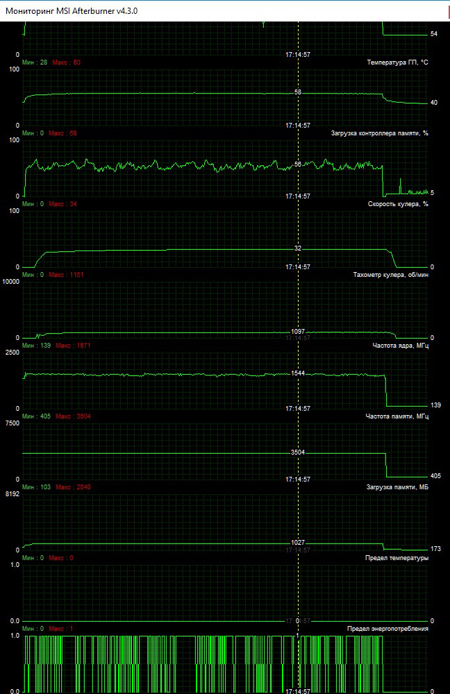 Иногда частота GPU повышалась до 1658 МГц при заявленном значении 1455 МГц для режима Boost. Конечно, это происходило далеко не всегда, и большую часть времени GPU видеокарты в играх работал на частотах от 1455 до 1658 МГц.