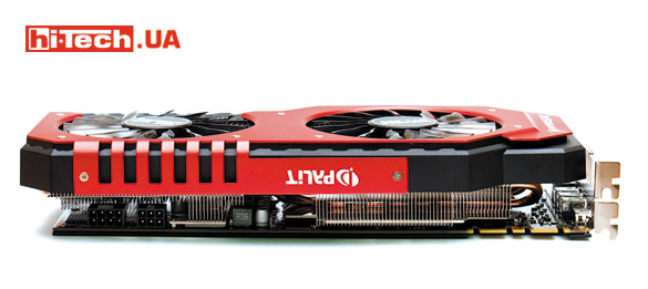Фирменная система охлаждения очень порадовала эффективностью. Правда, она довольно габаритная: с ней видеокарта займет в системе более двух слотов. Без нагрузки видеокарта может полностью останавливать вентиляторы и работать бесшумно