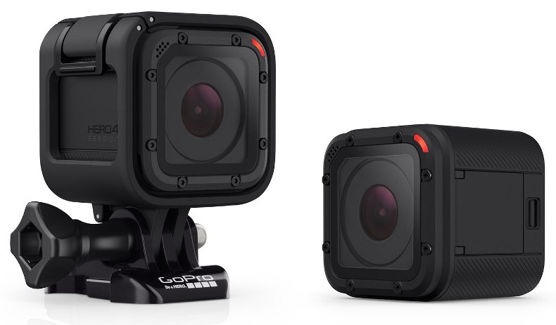 Камера Hero 4 Session заметно отличается от своих «сестер» Это черный пластиковый кубик размером 40×40×40 мм. Разрешение видео — до 1440p, а фото — 8 Мпикс. В отличие от других камер GoPro, она не имеет жидкокристаллического дисплея спереди. Управляется всего одной кнопкой, выдерживает погружение на глубину до 10 м.