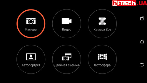 Интерфейс режима камеры Samsung Galaxy S5. Два центральных ярлыка, установленных изначально, можно заменить на более удобные для вас