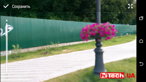 камере Lytro. Уже на полученном снимке можно менять точку фокусировки в кадре, выделять передний план, применять эффекты 3D, эффекты «времен года». Сложно сказать, какое именно влияние на реализацию этих эффектов оказывает вспомогательная камера. Создается впечатление, что в основном это реализуется скорее при помощи мощной программной обработки. При детальном осмотре снимков с изменением точки фокусировки можно обнаружить различные «нестыковки», да и полученный вид фото получается довольно «искусственным»: так оптика не размывает, конечно, но как для мобильного фото эффекты интересные. Кстати, у Samsung можно тоже выделять объекты размытием фона, но реализовано это далеко не так интересно, а артефакты можно обнаружить и тут.