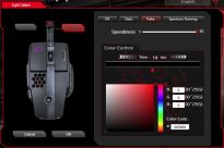 Персонализировать мышку можно подсветкой в области квадрата на левой основной клавише и колеса мышки. Доступны 16,8 млн оттенков с вариациями статического света, пульсации и перелива цветов. На правой кнопке мыши расположен привычный красный 4-сегментный индикатор режима DPI.