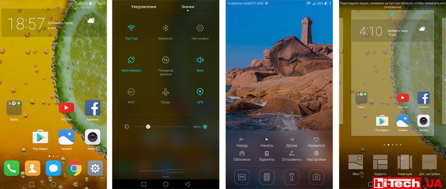 Управление в целом понравилось. На мой взгляд, EMUI 4.1 весьма удобна в использовании и не сильно навязчива различными наворотами. Единственное, что мне однозначно не понравилось — это отсутствие экранного меню. Все ярлыки приложений размещены прямо на рабочих экранах.