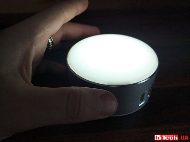 Переключение режимов реализовано интересно и одновременно просто. Нужно коснуться двумя пальцами стенок лампы и таким же образом переключать режимы свечения. На боках лампы расположены сенсорные зоны.