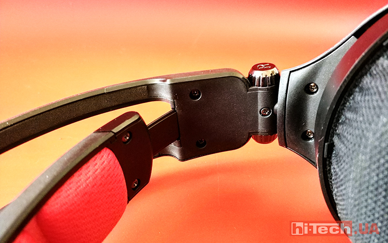 Амбушюры выполнены из ткани и это практически идеальное решение. Мы опробовали эту гарнитуру в летнее время и отметили, что уши в ней практически не потеют. К тому же, толщина наполнителя тоже не маленькая, поэтому от длительного использования дискомфортных ощущений также нет.