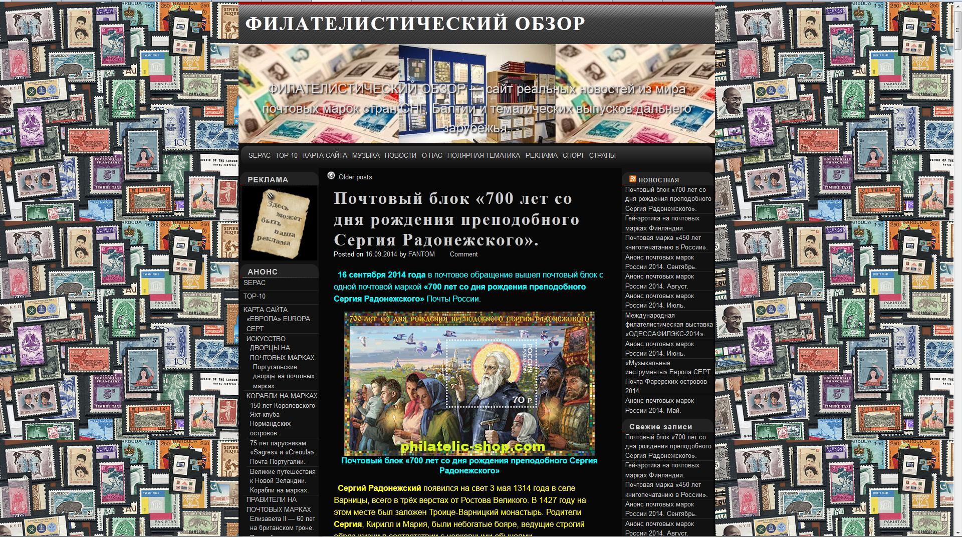 Следующий интересный ресурс — это Филателистический обзор.