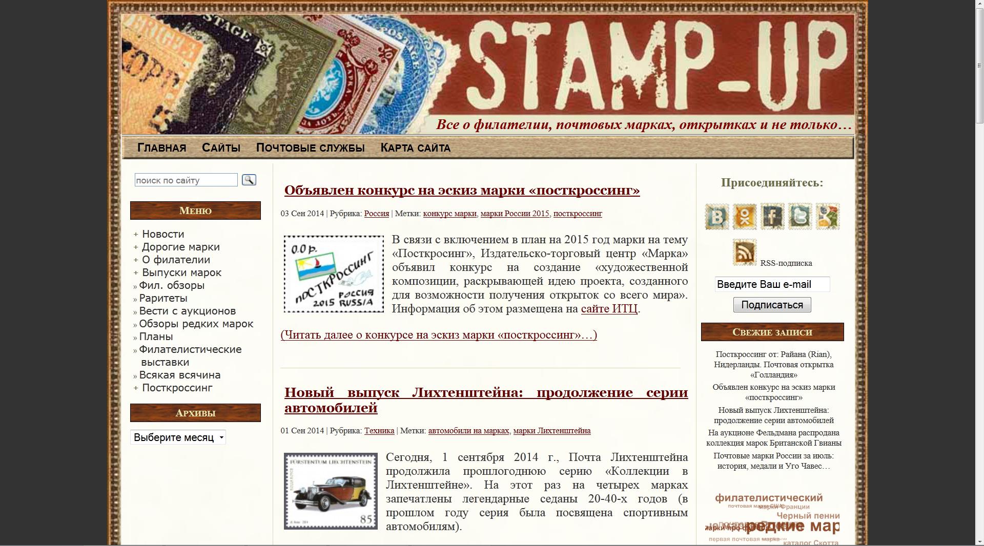 Еще один интересный проект — это Стэмп-ап: Все о филателии, почтовых марках, открытках и не только