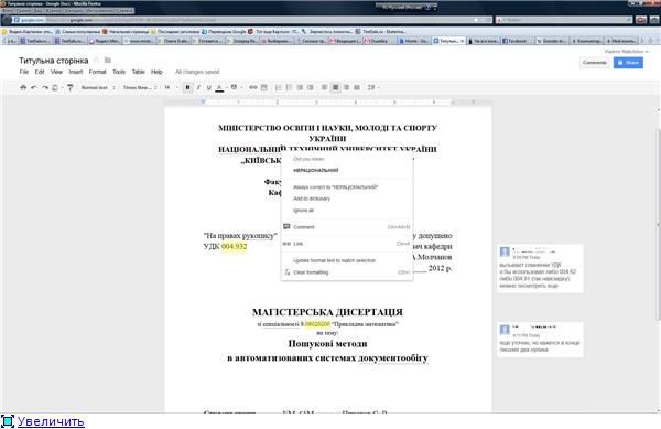 Сегодня с использованием Google Docs редактировал дипломные магистерские работы своих подопечных.
