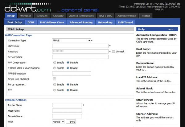После этого загрузится роутер уже под оболочкой dd-wrt и IP сменится на 192.168.1.1. Если вы использовали статические настройки IP на компьютере, смените свой шлюз и адрес на адреса из подсети 192.168.1.0.