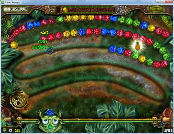 выпустили в свет продолжение игры Zuma Deluxe под названием Zuma’s Revenge. Разработчики не сидели сложа руки все это время. Судя по всему, формальный подход к выпуску новых версий игры (в стиле «больше уровней, круче графика, интеллектуальнее противники и бла-бла-бла») им не по душе. И это не может не радовать. Во второй версии игры неизменными остались только основной принцип игры да главный герой. Все остальное в той или иной степени подверглось переработке.