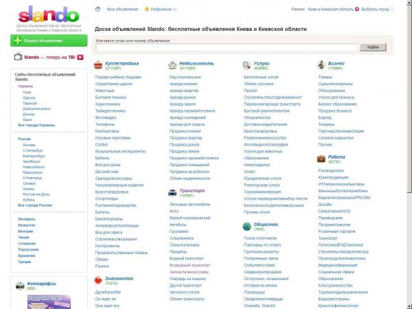 Ще один універсальний ресурс, на якому багато оголошень і велика кількість відвідувачів, slando.com.ua. Все вище сказане, також справедливе і для цього ресурсу. Його особливістю являється те, що він автоматично підіймає старі оголошення на верх по даті, навіть якщо вони уже неактуальні.