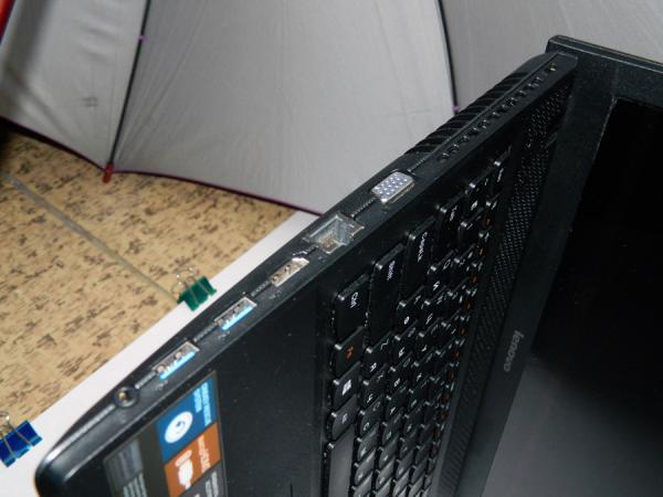 USB портов здесь три, два из них поддерживают 3.0, есть и VGA и HDMI разъем. Сетевой разъем — гигабитный. А вот стандартные порты микрофон+наушники по-модному заменили на один гарнитурный. Подобрать подходящую гарнитуру мне до сих пор не удалось.