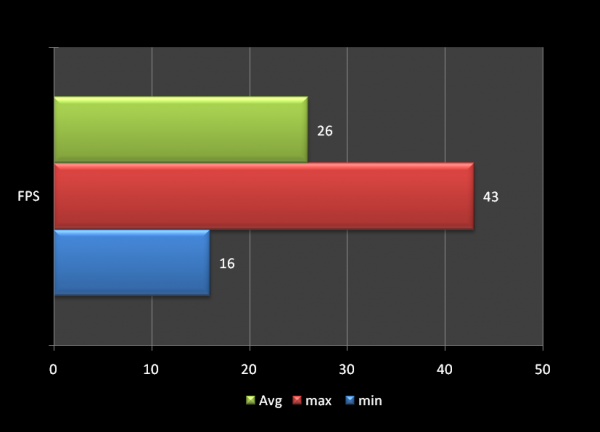 Як бачимо комфортною гру не можна назвати, але всі принади одної з найкрасивіших ігор можна оцінити в повній мірі. Для тих кому не так важлива картинка, то можна легко отримати 35-40 fps, зробивши відповідні налаштування.