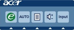 Механічні клавіші управління монітором Acer G245H Bbd розташовані на нижній грані в правій частині корпуса у кількості п’ятьох штук.