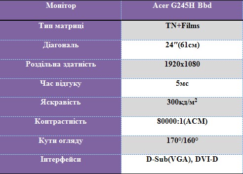 Тепер можна переходити безпосередньо до огляду монітора Acer G245H Bbd, який був придбаний в результаті вище викладених роздумів.