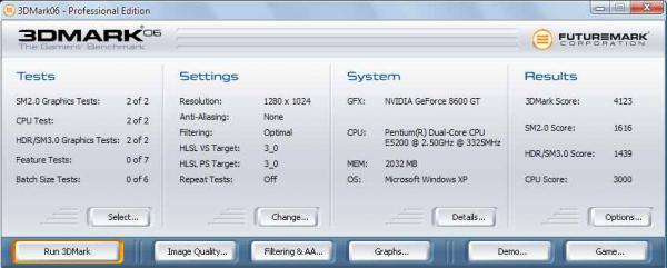 Тепер пару слів про отримані результати. Відеокарта пройшла тестування у 12 сучасних і дуже популярних іграх. На мою скептичну думку, рядовому невимоглявому геймеру вистачить для гри, щоб середній FPS був 17 і вище, хоча бато хто може і зі мною і непогодитсь. З протестованих ігор такий FPS був зафіксований у 7 ігрових проектів, а в решті для отримання більш комфортних показників доведеться знизити налаштування. В синтетичному тесті 3DMark06 відеокарта набрала 4123 попугаї.