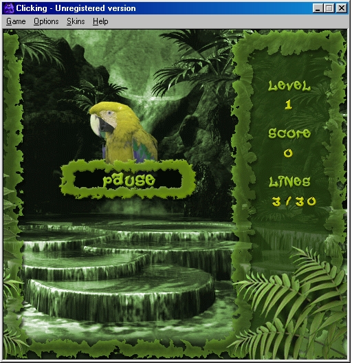 Начнем с игры Clicking, разработки компании AliveGames (бывшая VertexLabs, Inc — увы, на сегодняшний день ни одной уже не существует). В память о них остался только сайт, на котором присутствуют краткие описания игр, в том числе и нашей героини. Сама игра является одной из многочисленных вариаций на тему игры всех времен и народов Tetris. То же игровое поле – «стакан», только сверху падать в него ничего не будет, даже наоборот. Изначально поле заполнено костьми, а точнее – очень даже симпатичными черепушками скелетов различных цветов. Мы уже успели привыкнуть в остальных играх, что скелеты – наши злые враги со свирепым недружелюбным оскалом. Здесь же они миролюбиво улыбаются до тех пор, пока не попадут в «стакан».