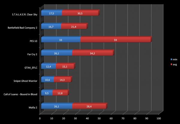 Судячи з отриманих результатів, то більш-менш нормально пограти можна в ігри в яких середній FPS не нижче 25. В іграх. де зовсім мала кількість кадрів, можна зменшити налаштування і отримати кілька додаткових FPS. На мою скептичну думку даний процесор неповністю розкриває потенціал відеокарти.
