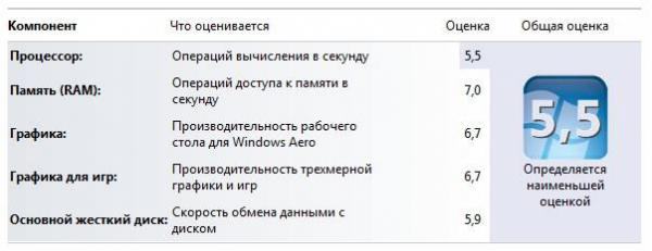Тестування проходило в середовищі 32 бітної Windows 7, нажаль не було у мене 64 версії. Для початку поглянемо, як оцінила ноутбук сама ОС, оцінка в 5,5 балів дуже добре, найслабшим виявляється процесор. Переходимо до ігрових тестів.