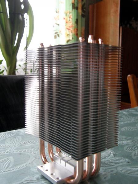 Жаль але в комплекті відсутні кріплення для LGA1366. Кулер має баштову структуру, яка в своєму складі має 42 алюмінієві пластинки пронизані на три мідні трубками. Його розміри 90x51x139 мм , а вага складає всього 470г, що досить мало порівнюючи з параметрами “супер-кулерів”.