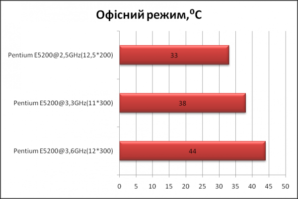 Pentium E5200@3,3 GHz (11*300) Vcore під навантаженням 1,36В;