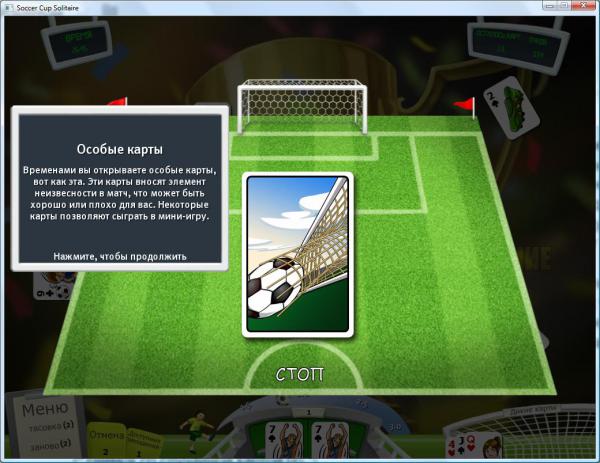 Помимо уже описанного, у игрока есть еще несколько возможностей забить гол или набрать дополнительные очки. Для этого из вспомогательной колоды карт нужно вытянуть особую карту. К чему она приведет — выбирает игрок. Всевозможные действия чередуются на экране одно за другим, а он останавливает этот процесс нажатием левой клавиши мыши.