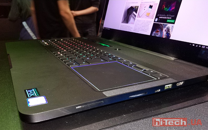 Корпус, как для такого агрессивного устройства, очень комфортный, а работа за ним успокаивающая, как покачивание в салоне во время езды на машине люкс-класса. Всюду матовый софт-тач. Кнопки с небольшим, но достаточным ходом клавиш. Тачпад, с поддержкой нескольких касаний — справа от клавиатуры для не игровых пальце-,движений. Над ним — кнопка-скролл. Все это светится под управлением Razer Chroma и выглядит как кричаще тюнингованное Bentley какого нибудь мажора.