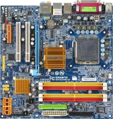 Основою будь-якого комп’ютера є материнська плата, тому при її виборі потрібно бути максимально уважним і приділяти увагу всім дрібницям. Прикинувши, що коштів обмаль, було вирішено брати материнську плату з інтегрованим відео, а потім, через кілька місяців дискретну відеокарту. В той час я не дуже розумівся на наборах логіки, тому спочатку звернув увагу на дешеві 945G + ICH7, а уже в ході порівняння з новішими я помітив, що у них відсутня підтримка FSB 1333МГц і DDR2 800Мгц, що змусило відмовитись від ідеї дешевої материнської плати. Розуміючи що потрібно свіжі набір логіки з інтегрованим відео, я почав розглядати чіп G33. При виборі плати я зовсім не звертав на вендора, так як не мав ніяких улюблених, просто дивився характеристики. Дуже сподобалась материнська плата GA-G33M-S2, виробництва Gigabyte , яку оснастили набором логіки Intel® G33 + ICH9, останній чіп підтримує рейд масиви всіх рівнів, що не було в інших виробників. Хоча вона була в форм факторі Micro ATX, 244мм x 244мм , але мала весь набір необхідних розємів. Головним для мене було те, що вона підтримувала всі процесори Core.