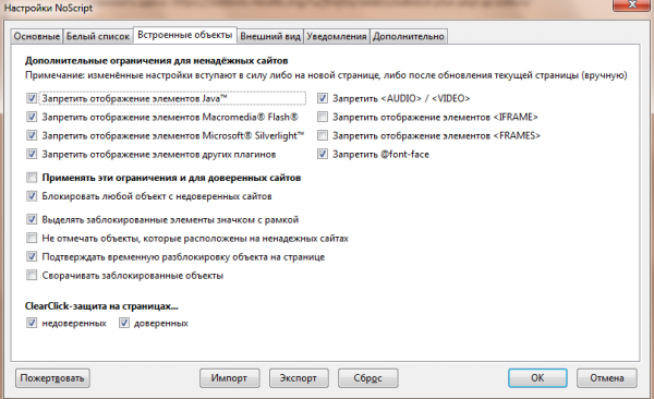 NoScript – дополнение, которое позволяет блокировать множество различных типов объектов на веб-страницах.