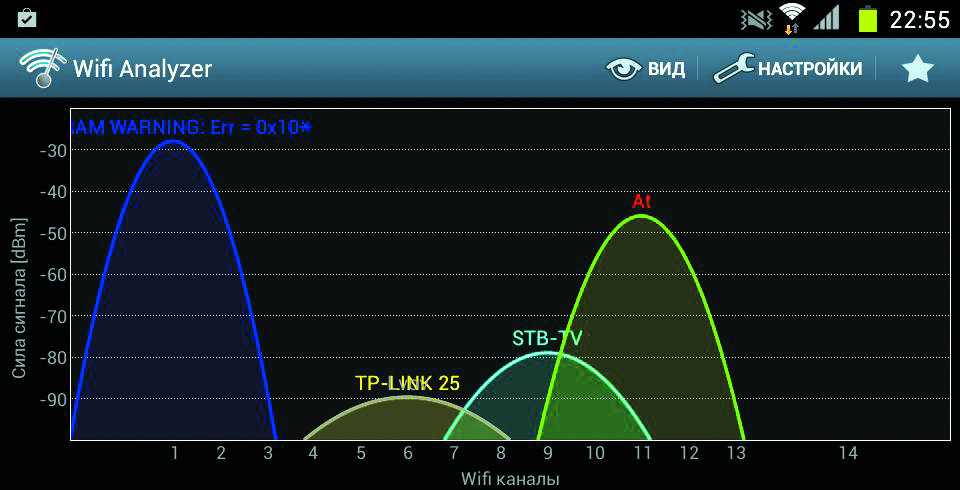 В нашем окружении на первом графике рейтинга каналов самым «популярным» оказался шестой, и использовать его, а также ближайшие к нему, нежелательно. Как видно из второго графика уровня сигналов, параболы каналов частично перекрываются
