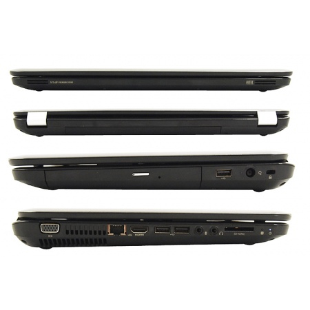 На лівій стороні втиснулися: відеовиходи VGA і HDMI, яких вистачить для підключення більшості сучасних зовнішніх дисплеїв; два 3.5 mini-jack для підключення мікрофону і навушників чи колонок; два роз’єми USB 2.0 і один мережевий RJ-45; уніерсальний картрідер; індикатори роботи і завантаження системи. Всі вони межують з отвором для виведення нагрітого повітря з корпусу. Не вистачає, для повного набору, роз’єму USB 3.0.