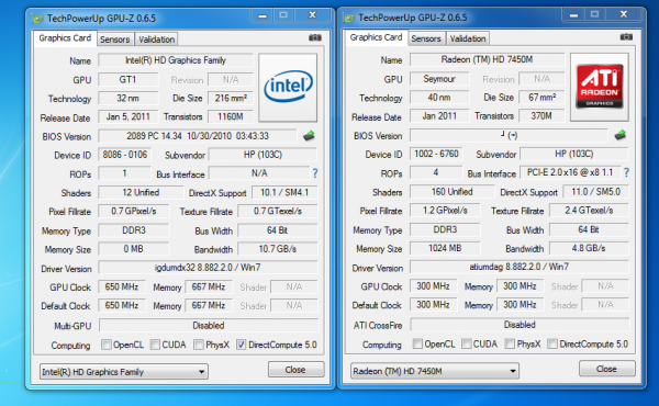 Крім вбудованого відео, присутня і дискретна відеокарта — AMD Radeon HD 7450M. В основі якої лежить, уже застарілий, чіп Seymore. По суті це перейменована відеокарта минулого покоління — HD 6450M. Через HDMI вихід можлива передача звуку у високій якості (TrueHD or DTS Master Audio).