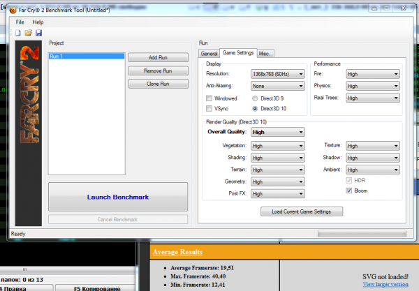 У більш старій грі – Far Cry 2, радеон зміг витягнути середній показник кадрів в секунду до 19,5 FPS, а мінімальний в районі 12,4. Зважаючи на отримані результати, можна сміливо грати в дану гру, для більшого комфорту можна підкрутити налаштування.