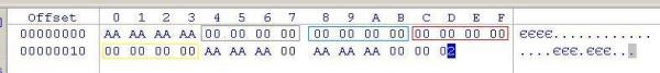 И так преступаем к редактированию. где на рисунке символы – АА — у вас будут цифры, их мы не трогаем, а вот где – 00 — , вы тоже поменяйте на нули. Первые четыре нуля в черной рамочке отвечают за уровень черных чернил, следующие синих, затем красных и желтых. Т.е., если вы заправили только цветной картридж, то замените нулями только то, что в синей, красной и желтой рамочке, в черной не трогайте. И наоборот, если вы заправили черный картридж, и хотите восстановить только его уровень чернил. Обязательно проследите, что бы последних три байта были – 00 00 02 -.