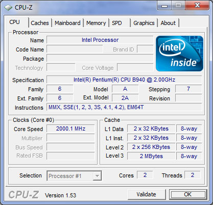 Модель процессора — Intel Pentium B940, 2 ГГц