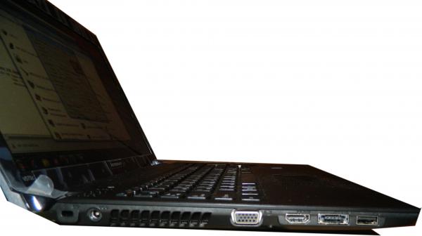 Левая сторона меня немного удивила – там гнездо для замка и электропитания, вывод тепла активной системы охлаждения, VGA-разъем, HDMI, порт-сюрприз, и USB2.0. Порт сюрприз – интересное решение, совмещенный eSATA и USB3.0.
